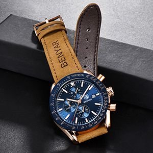 Crafted from high-grade materials, the watch features a durable stainless steel casing and a genuine leather strap in a rich brown hue. The smooth leather not only adds to its luxurious appeal but ensures a comfortable fit for everyday wear. Whether you’re headed to a business meeting or a casual outing, this watch seamlessly complements any outfit.